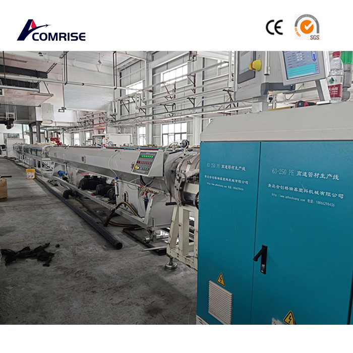 Според специфичното изискване на клиента, Comrise Machinery произвежда 110 -милиметровата HDPE тръбна машина с Siemens PLC и сензорен екран за контрол на пълната машина. Има и система за автоматично управление на теглото на метър. Това устройство ще гарантира тръбата на PE с точна дебелина на стената според изискванията. Екструдерът е SJ65/33 с 55kW AC мотор.