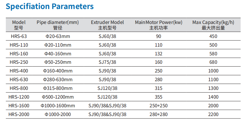 Капацитет: Екструдер на единичен винт, подходящ за обработка на PE смола с висок капацитет, с максимален капацитет от 1000 kg/h. Диаметър: От 16 до 800 мм. Приемане на разумен дизайн и поглъщане на безопасно производствено технология, той е получил CE и ISO сертификати
