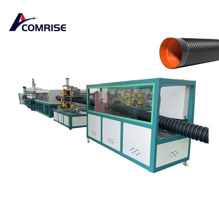 Машината за производство на тръби с двойна стена е горещ продукт за продажба на нашата компания. Изработен е от полиетилен/полипропилен частици като суровини. Диаметърът на готовите тръби варира от 40 мм до 110 мм, а произведените тръби имат добри пулсационни форми, последователни шевове и гладки вътрешни и външни повърхности. Скоростта на производствената линия е приблизително 2-4м/мин (в зависимост от специфичния диаметър на тръбата)