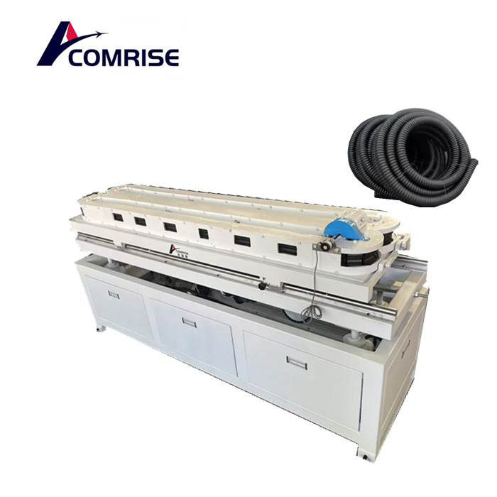 Нашата компания внимателно е разработила пластмасовата серия от серии от серии с една стена, гофрирана тръбна производствена линия. Чрез задвижваните от предавката модули водата се охлажда в резервоара за вода на машината за формоване, а продуктът се охлажда с въздух, което води до бърза скорост на формоване, равномерна гофрирана форма и гладки вътрешни и външни стени на произведените гофрирани тръби.