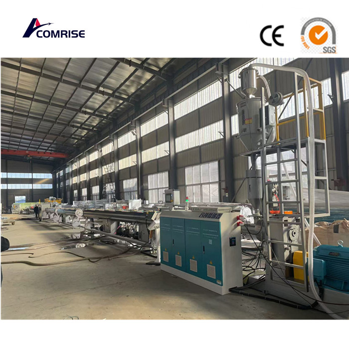 Тази производствена линия на екструзия може да се използва за производството на PE тръби с различни диаметри, с отлична твърдост и гъвкавост, устойчивост на топлина, устойчивост на стареене, висока механична якост, устойчивост на напукване на екологично напрежение, устойчивост на деформация на пълзене, термична връзка и т.н. Следователно тази производствена линия на тръбопровода е предпочитаният избор за газови, вода и селскостопански напоителни тръбопроводи между градските и селските райони.
