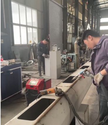 Екструдер на единичен винт → Ко-екстрадер за цветна струна и много слоеве → Мухъл → Вакуумно калибриране Резервоар → Спрея охлаждане на водата Резервоар → Изключване → Без резачка за прах → Стакер → Краен продукт Проверка и опаковане