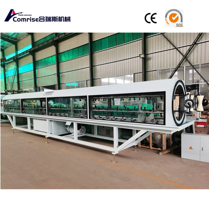 Тази машина се състои от екструдер, плесен, вакуумно калибриране на резервоара, отрязване на единица. Единица за рязане, стекер и т.н.
